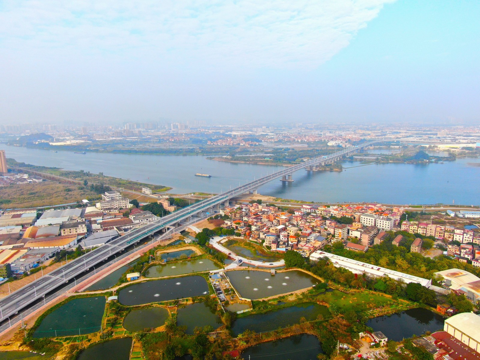 广东省佛山龙翔大桥跨越顺德水道接入佛山一环高速,连接南海与禅城两区。(摄影:李佳泽)