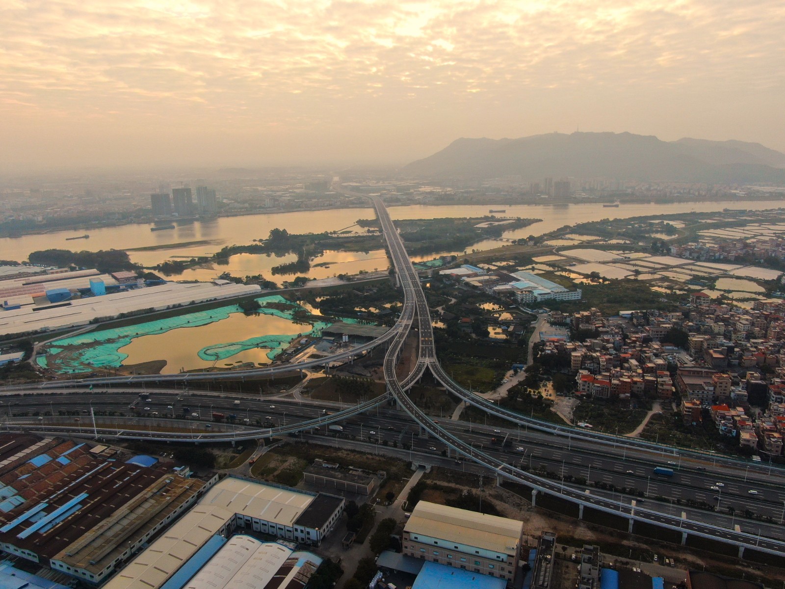 夕阳下的龙翔大桥。龙翔大桥的通车,进一步推动佛山西南片区与中心城区融合,对推动佛山经济发展有重要意义。(摄影:李佳泽)