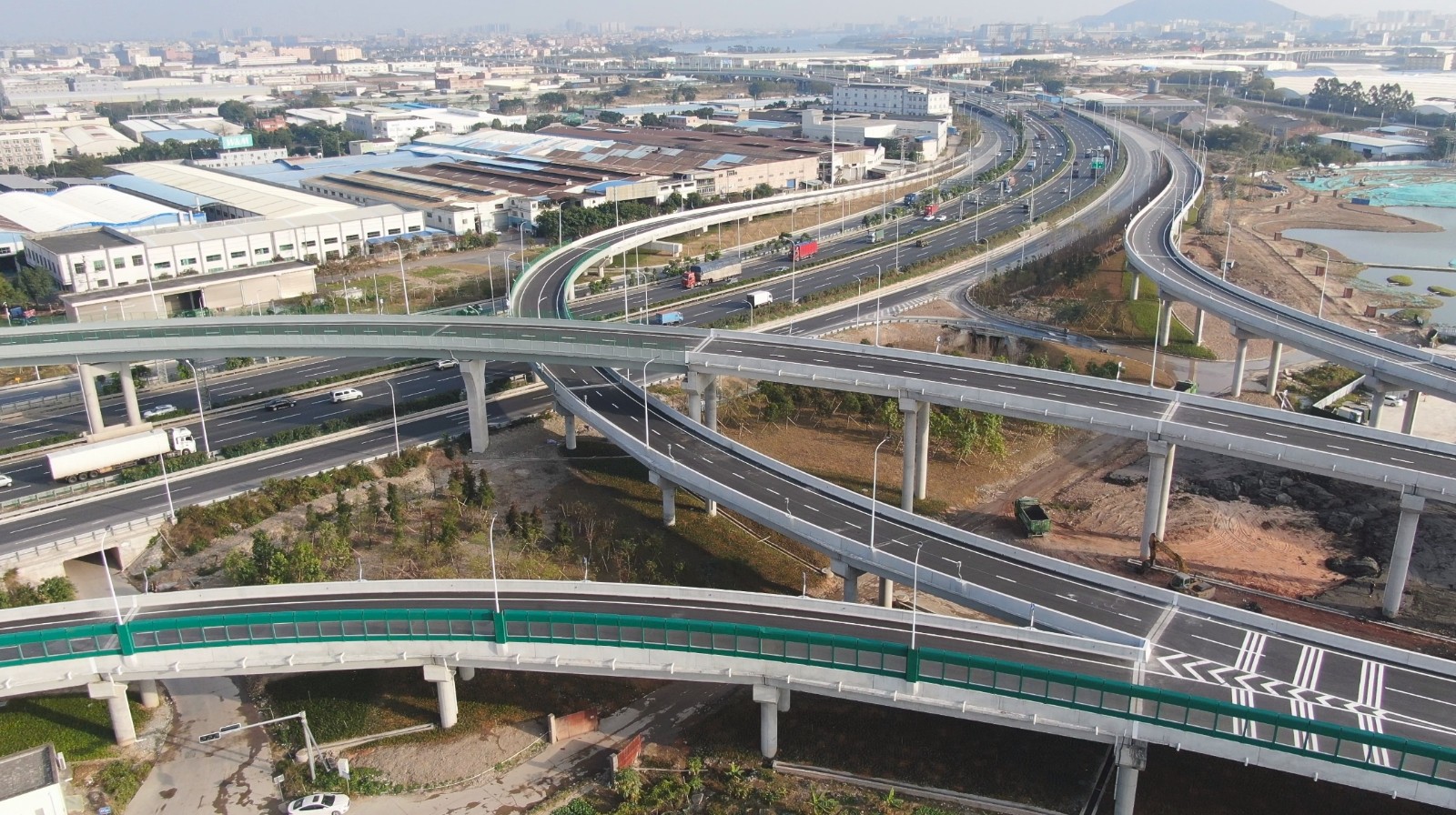 龙翔大桥引道工程龙畔互通立交纵横交错。(摄影:侯捷)