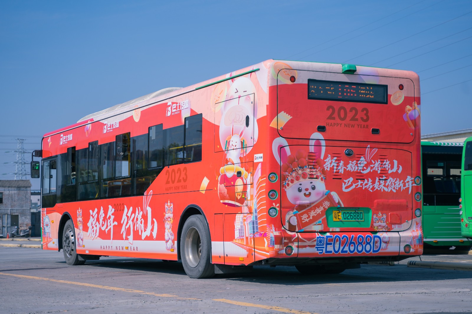 新年伊始,巴士传媒从佛山本土文化出发,迎合癸卯年春节节点,以“福兔迎春”为创意车身主题,推出一辆“新春福兔主题公交”,向市民传递新年祝福与美好祈愿。