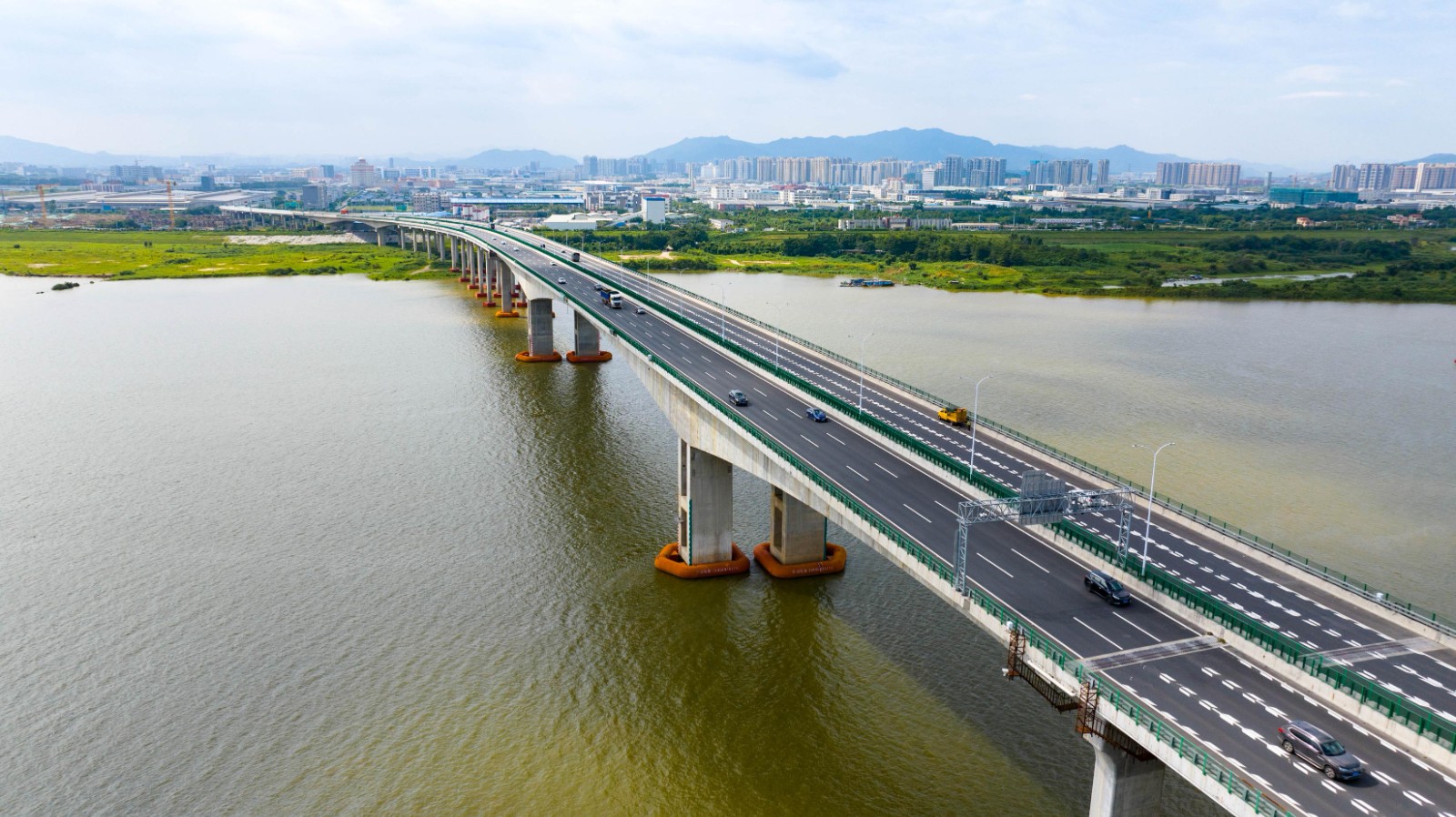 北江大桥串联起绿水青山和城市建设新景观,给过往司乘带来绝美的视觉享受。(摄影:王经纬)