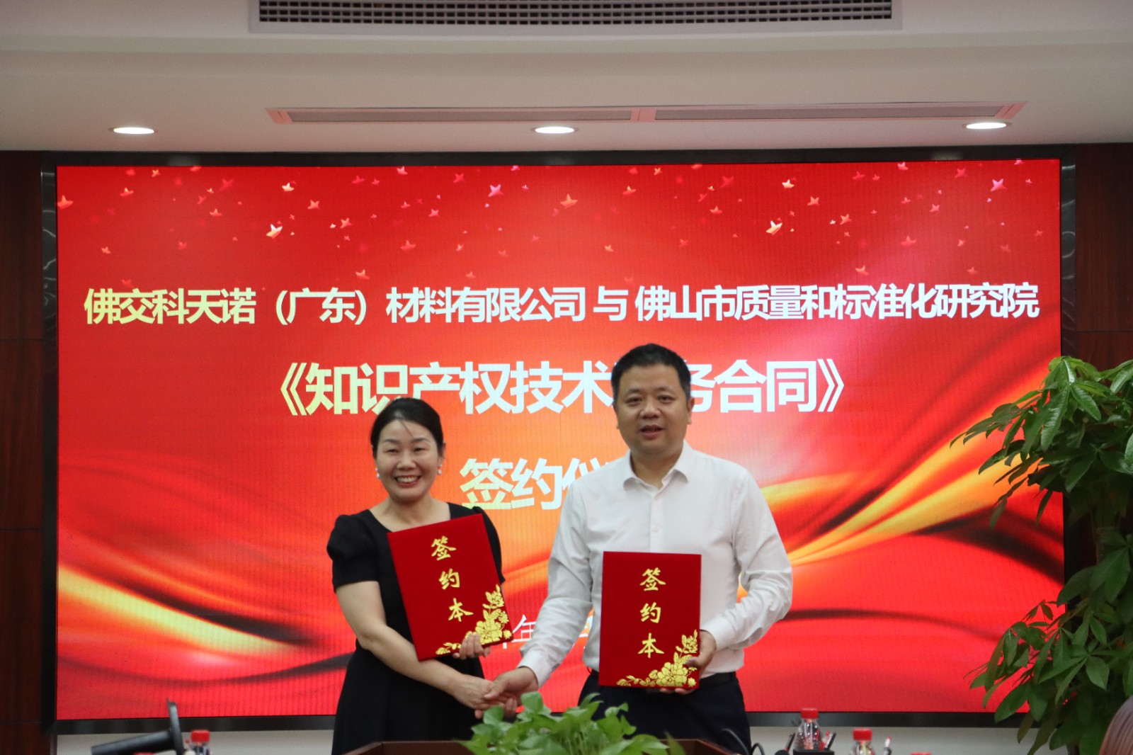 市国资委国资资源整理利用中心主任钟敏芝、产权管理科李丽娟,市质标院绿色发展节能中心主任陈毅敏、标准化分院工程师易礼康,科技公司新材料研发部负责人杨腾宇、主任研发工程师舒本安,交科天诺公司副总经理孟华君,技术开发公司副总经理方杨、李浩参加了本次仪式。