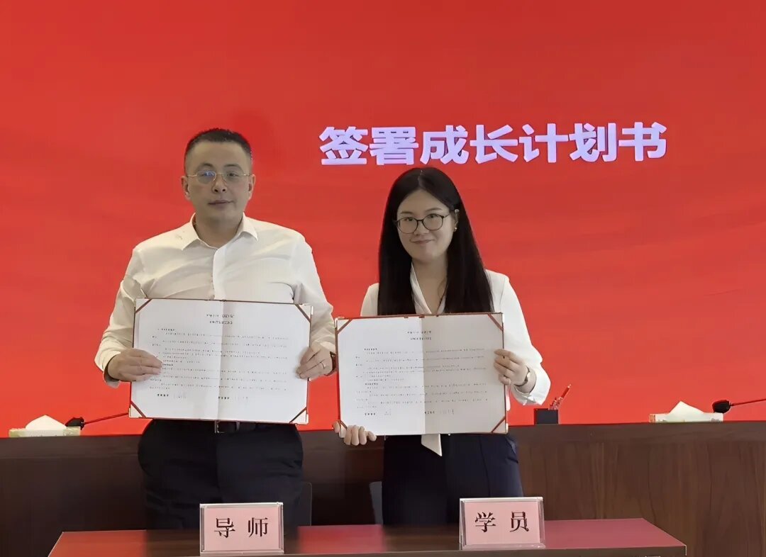 学员代表廖津和发言,他表示将主动深入一线锤炼实战本领,强化跨部门协作意识,以归零心态迎接挑战,加速成长,为公司贡献力量。随后,三对导师与学员代表现场签署“成长计划书”,标志着“理论学习+实践指导”双轨培养机制正式落地,为师徒间“传帮带”搭建起深度沟通与交流桥梁。
